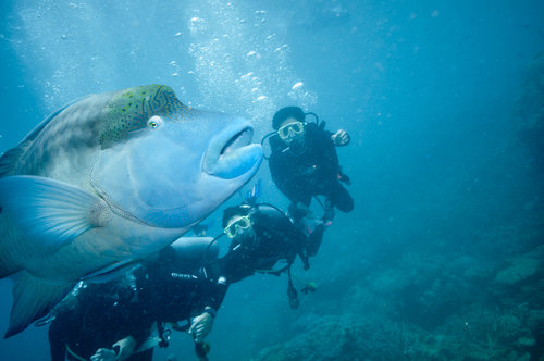 ↑在聖靈群島潛水,很輕易就能遇見夢幻的拿破崙魚